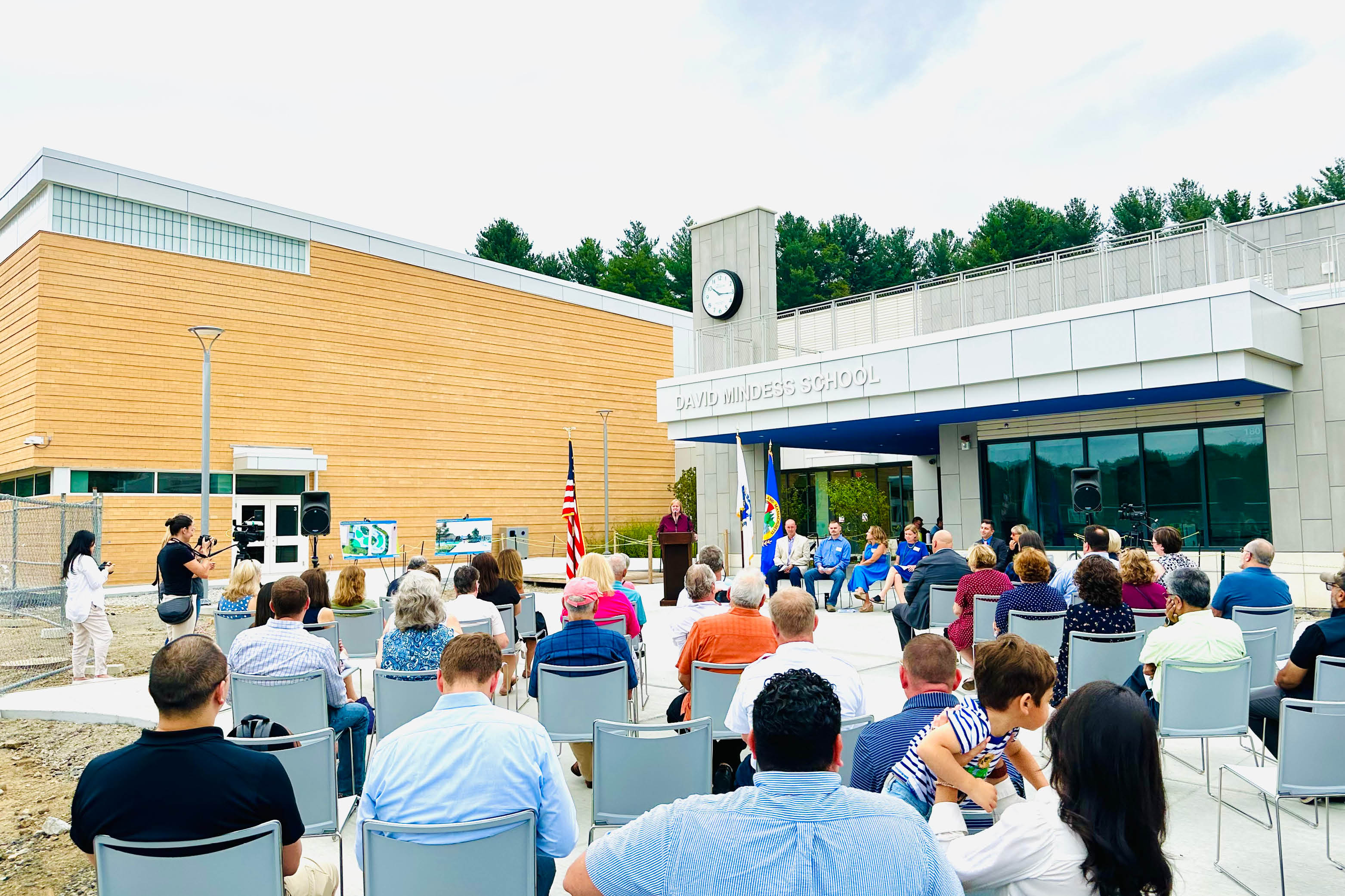 The Ashland community gathered on September 9th, 2023, to celebrate the grand opening of the town's new David Mindess School. The ribbon-cutting ceremony included Massachusetts Senate President Karen Spilka, Representative Jack Lewis, Executive Director of the Massachusetts School Building Authority (MSBA) Mary Pichetti, School Leadership, and the School and Building Committee. Following the ceremonial ribbon-cutting, all attendees were invited to a tour of the state-of-the-art facility.