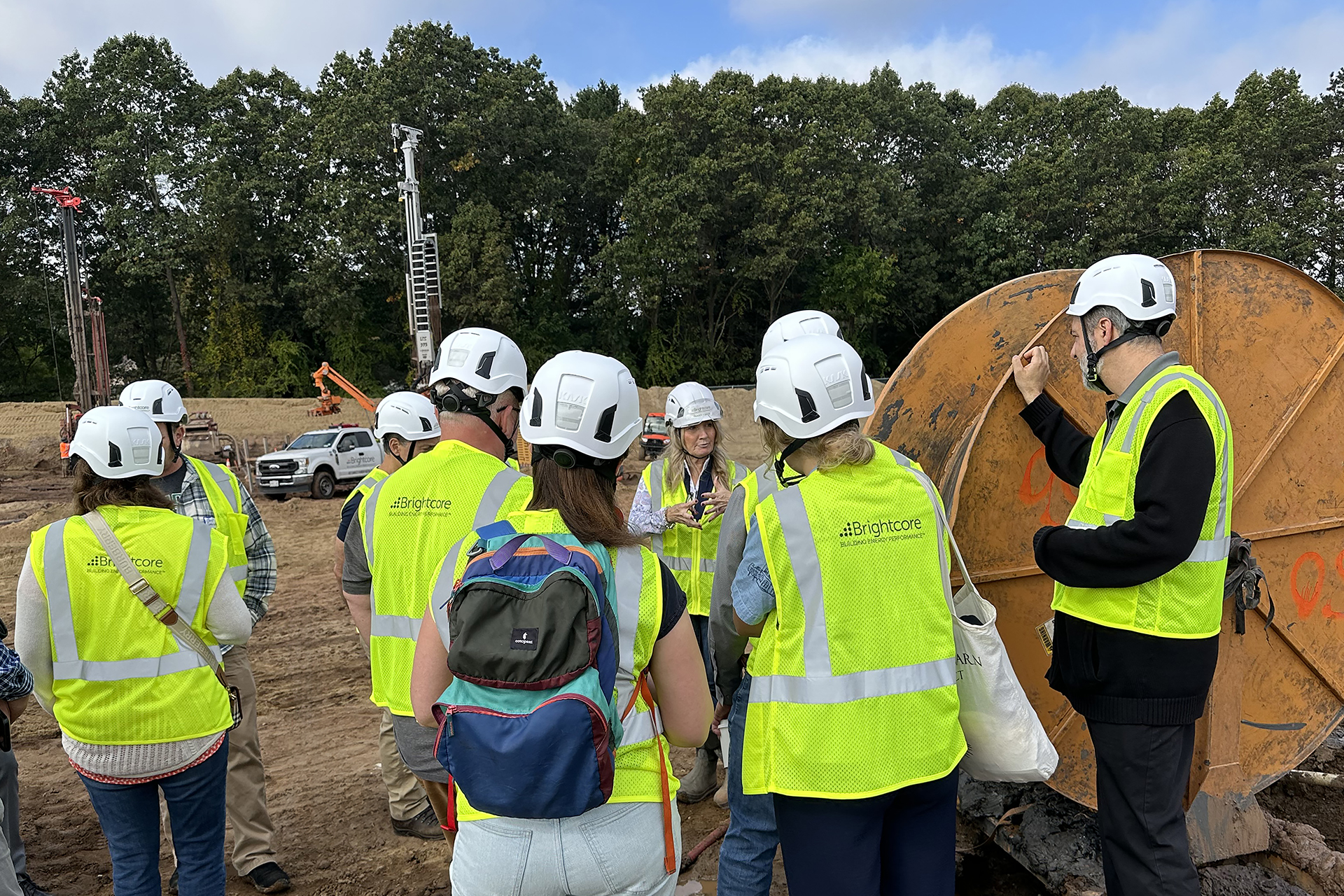 Kent Kovacs, Senior Vice President of Flansburgh Architects and Principal in Charge of the project, joined the tour, contributing to the important discussion. The event featured an educational session and a walk-through of the active geothermal drilling site, where district leaders and project partners shared insights into the decision-making process behind adopting the innovative technology.