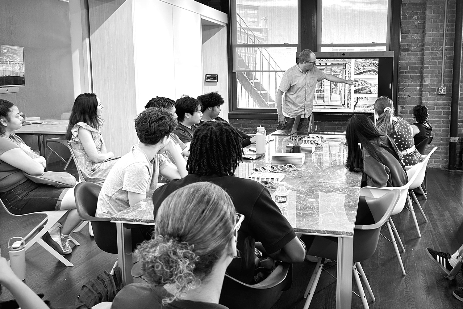 On Friday, July 18, Flansburgh Architects hosted a group of high school interns at its North End studio as part of the annual Firm Crawl organized by the Boston Society of Architecture (BSA) and the Boston Private Industry Council (PIC). The visit was part of the BSA x PIC Architecture/Design High School Internship Program, which places students from Boston Public Schools (grades 10–12), along with one student from Chelsea High School, in six-week paid internships at local architecture firms. This year’s interns had just begun their placements earlier that week.