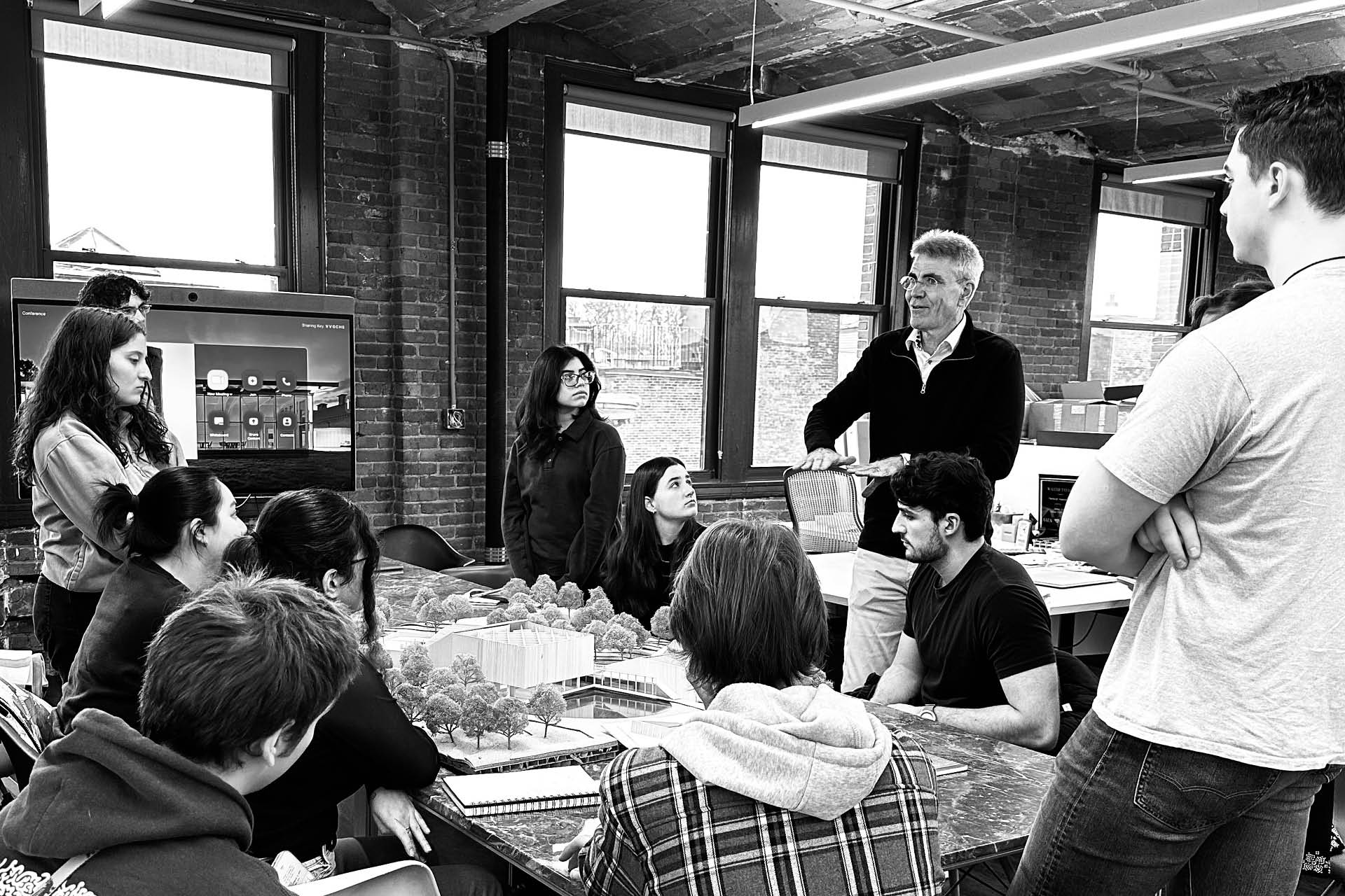 On the 2nd of February, a cohort of Wentworth Institute of Technology students were invited to explore the Flansburgh Studio. David Croteau, President, and Kent Kovacs, Senior Vice President, provided students with an exposure to professional life and office culture by showcasing recent projects, sharing experiences, fielding questions, and guiding the visiting group through a tour of their workspace.