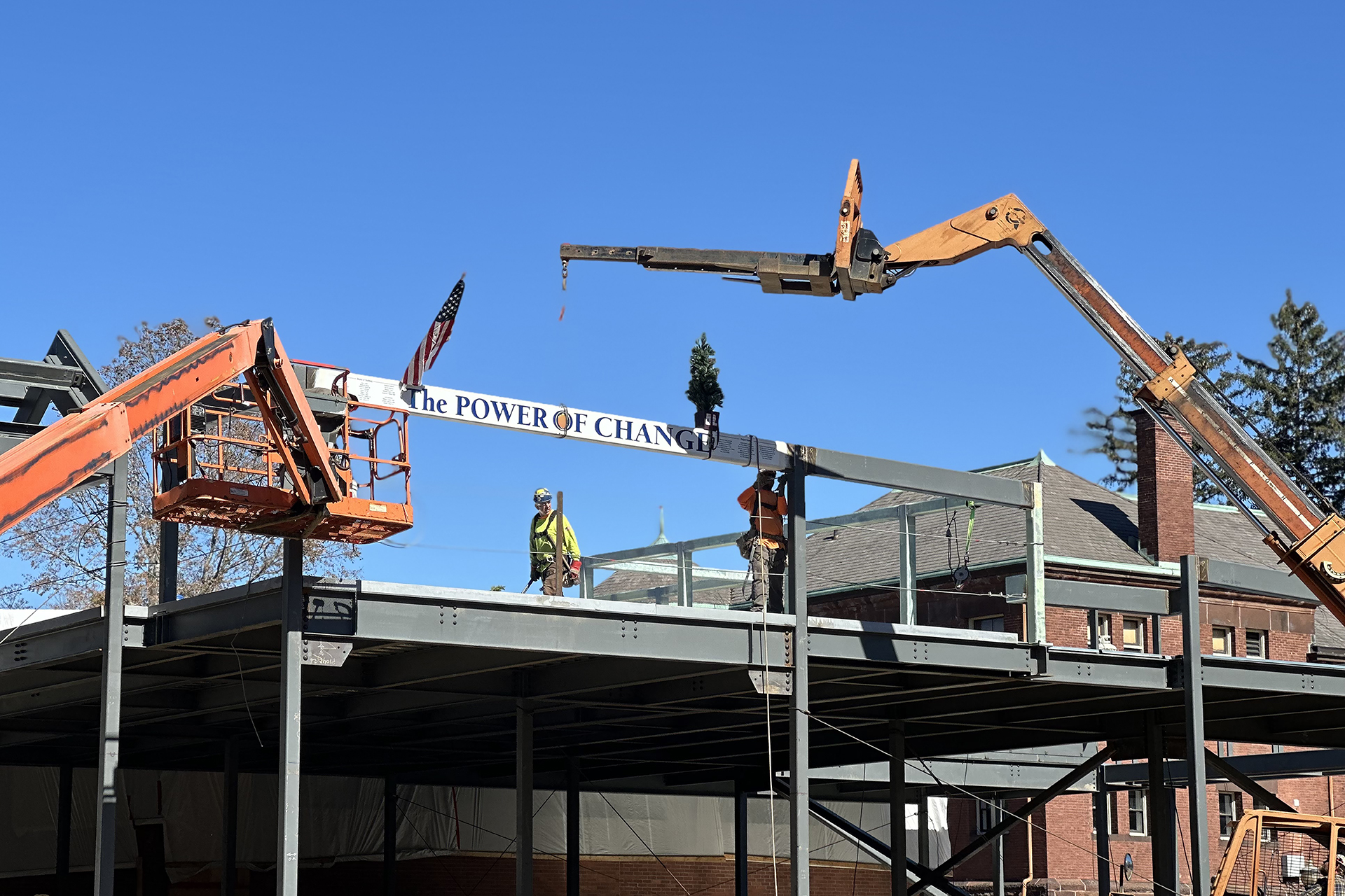 We are pleased to announce a significant project milestone: the final structural beam has been set on the renovation and addition of the historic Wilbraham & Monson Academy (WMA) Chapel, which is being transformed into a state-of-the-art Dining Commons. The moment was celebrated by the WMA community in a recent "topping off" ceremony.