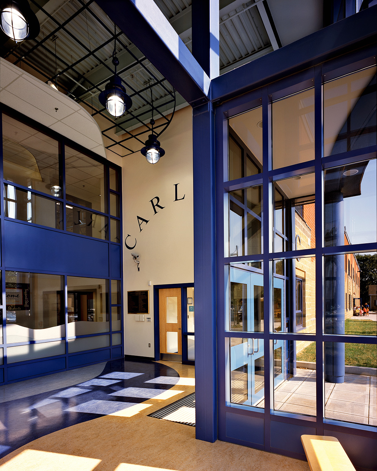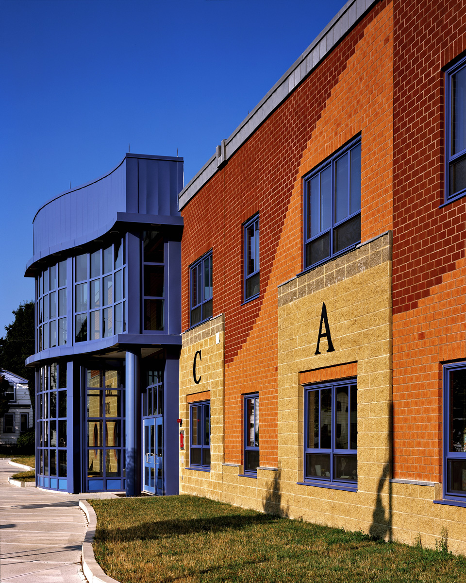 The award-winning Carlton School, the eighth school project designed by Flansburgh Architects for the City of Salem, is the smallest of its public schools. Because the Commonwealth's funding formula, which is based on the number of students, tends to encourage larger schools, the Carlton School had to be very efficient to fit into the formula. In response Flansburgh Architects developed the building as a two-story rectangular box. The simple shape and compact form yielded a number of efficiencies, including: