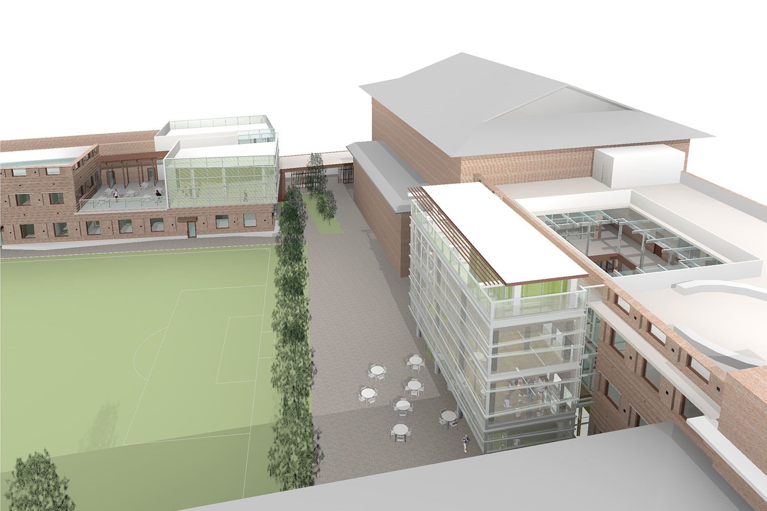 The project for this K-12 international school in Kathmandu, Nepal involves the design and construction of two structures: a new Library and Learning Center and a new Administration and Arts building. The library will become a technology and social hub for the campus, replacing the existing outdated library with a transparent modern 3-story building. The first level will hold project rooms, a conference room, quiet seating areas, social gathering space, a coffee bar and offices. The second level is organized around an outdoor courtyard, with elementary school book stacks and story area on one side and computer room and quiet area on the other sides. The upper floor holds classrooms and smaller seminar rooms. The administration building incorporates a new reception and entry gate, offices, and bus parking with drop-off space on the ground floor. The upper floor includes two art rooms and offices around an outdoor courtyard terrace.