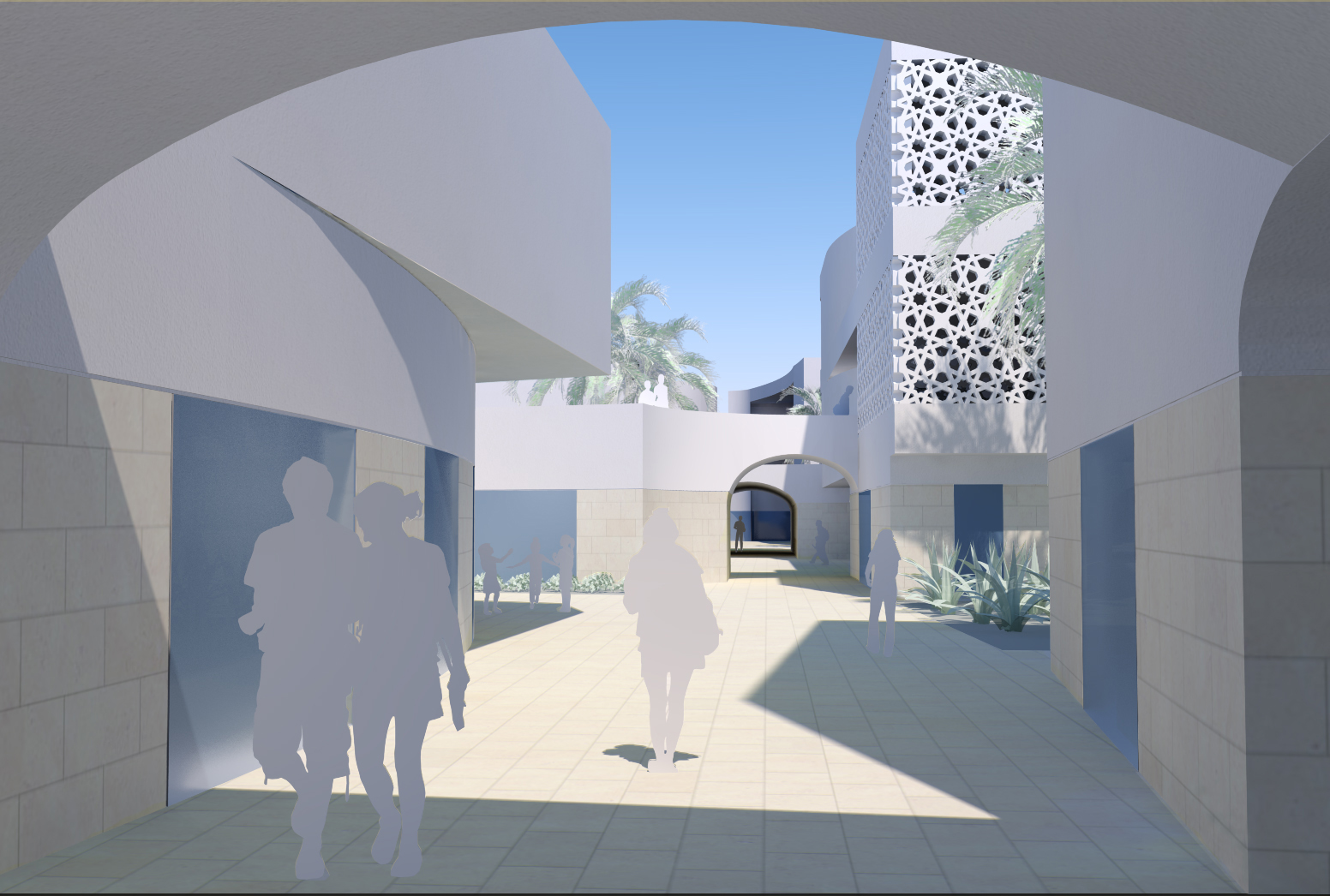 - The use of Moucharabieh, a screen wall with islamic patterns, for shading and privacy.