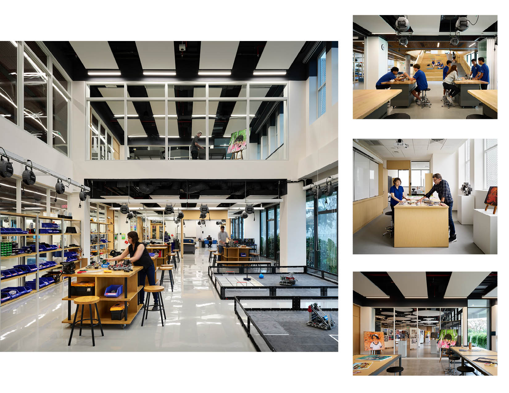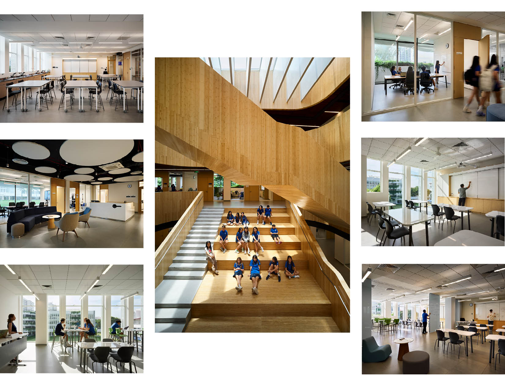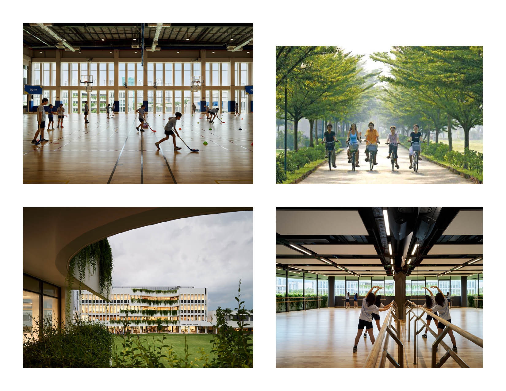 The STEAM Design Center includes five science labs, two art rooms, independent art studios, a 3D art and printmaking room, and an indoor/outdoor art gallery. The Center provides opportunities for high school students to explore their creativity, kindle their passions, and develop essential future-ready skills in a transparent, highly flexible, cross-disciplinary learning environment The Middle School is designed for students in grades 6-8, with their emotional, creative, and physical growth in mind. Skylit atria encourage collaboration and a sense of belonging. Bright, daylit, open spaces encourage hands-on learning and foster students’ experimentation. They include a 220 sqm black box theater, dance room, classrooms, science labs, breakout rooms and maker spaces. The library is a community hub for research and exploration while the gymnasium offers opportunities for physical activities, team sports, and community-building events.